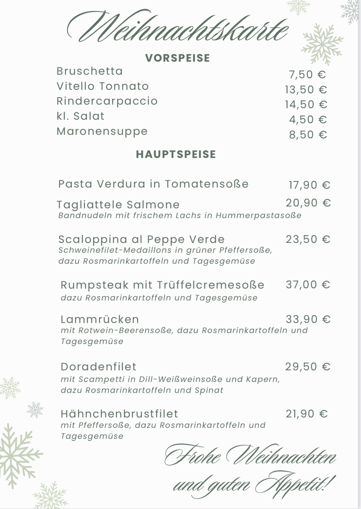 wie folgt haben wir an Weihnachten und Silvester geöffnet.